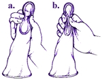 Mentre si tiene la guaina per l’estremità chiusa, afferrare l’anello flessibile interno (Inner Ring) e premerlo con il pollice e l’indice o il medio, in modo che diventi stretto e lungo (Fig. a – b)