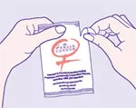 Mettere il preservativo nel pacchetto e buttarlo nell’immondizia. Non gettarlo nella toilette